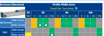 • Availability Grid: As users input application requirements, the tool instantly identifies which Thomson components match their choices. If a matching system isn’t immediately available, users can drill down to explore alternatives, minimizing the risk of project delays.